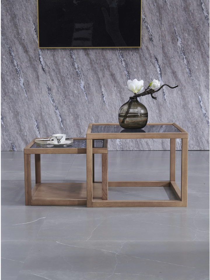 Chất liệu: Kính Cường Lực Đen Trong 8li + Gỗ Tần Bì (Ash)_62% + Gỗ Cao Su Veneer Sồi_38%