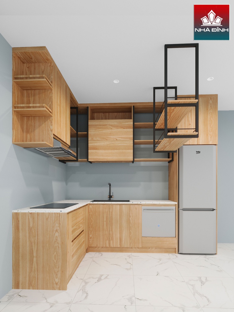 Tủ Bếp Hình Chữ L Gỗ Tần Bì