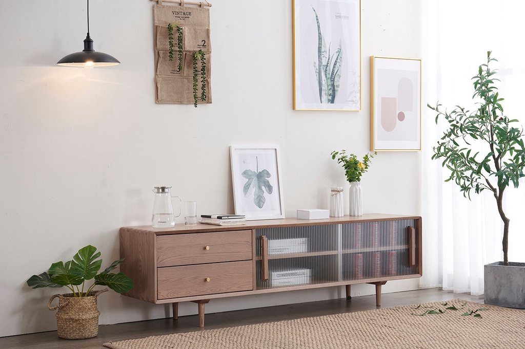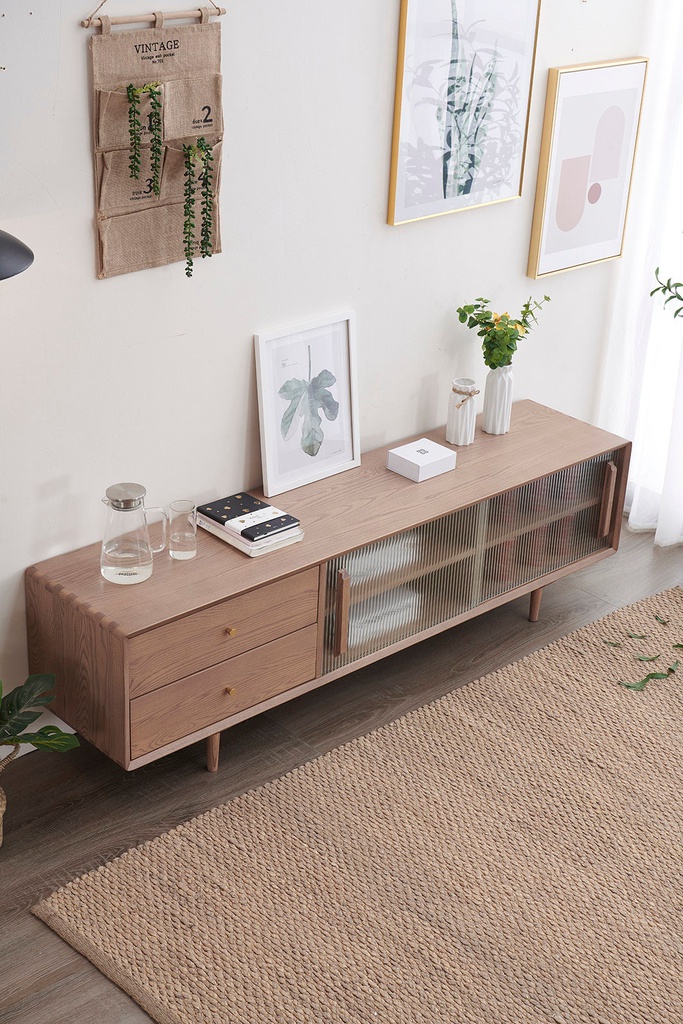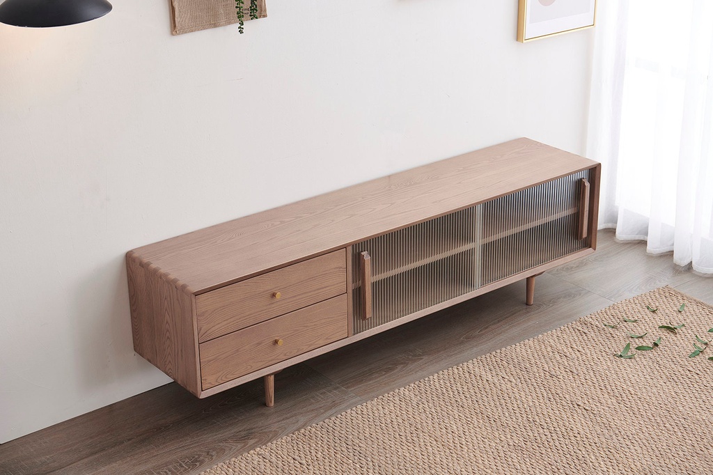 Chất liệu: Kính + Gỗ Tần Bì (Ash)_47% + Gỗ Cao Su Veneer Sồi_53%