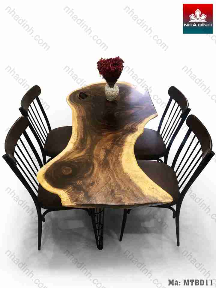 Việc sử dụng Mặt bàn gỗ Me Tây hiện nay được kết hợp với các loại chân bằng sắt, inox, phù hợp cho những căn nhà mang phong cách đơn giản, hiện đại.