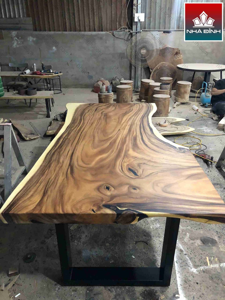 Bàn Ăn Gỗ Me Tây Nguyên Khối Dài 200 Rộng 86 dày 7 (cm)