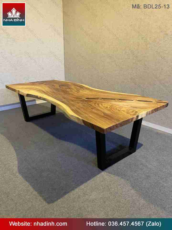 Bàn Ăn Gỗ Me Tây Nguyên Khối Dài 240 Rộng 126-96-115 Dày 5,5 Cao 75 (cm)