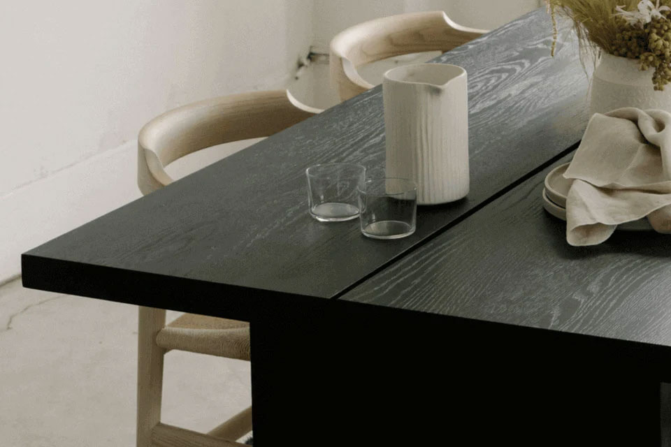 Bàn Ăn Gỗ Sồi (Oak) Sơn Đen Dài 200 Rộng 90 Cao 75 (cm)