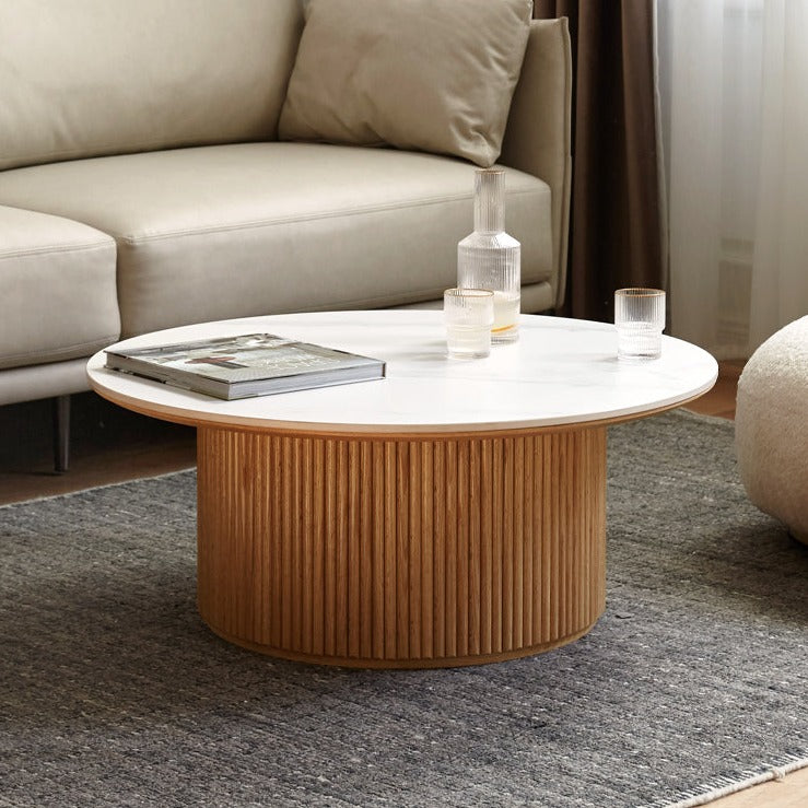 Bàn Coffee Gỗ Sồi Kết Hợp Mặt Đá Đường Kính 85 Cao 35 (сm)