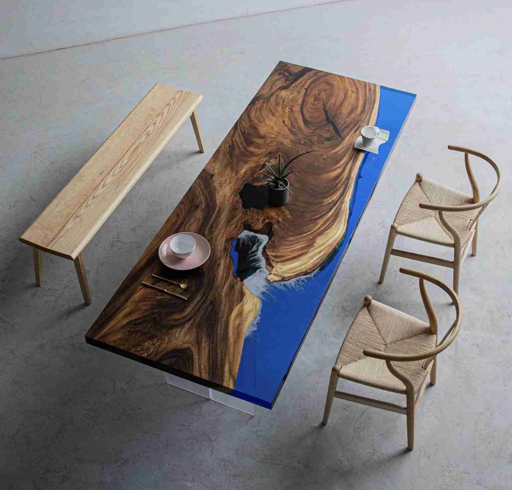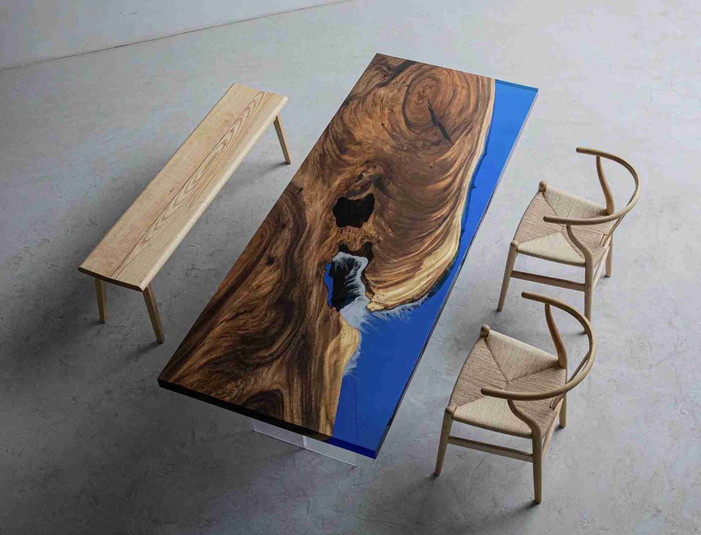 Bàn Epoxy Gỗ Me Tây Dài 220 Rộng 80 Cao 75 (cm)