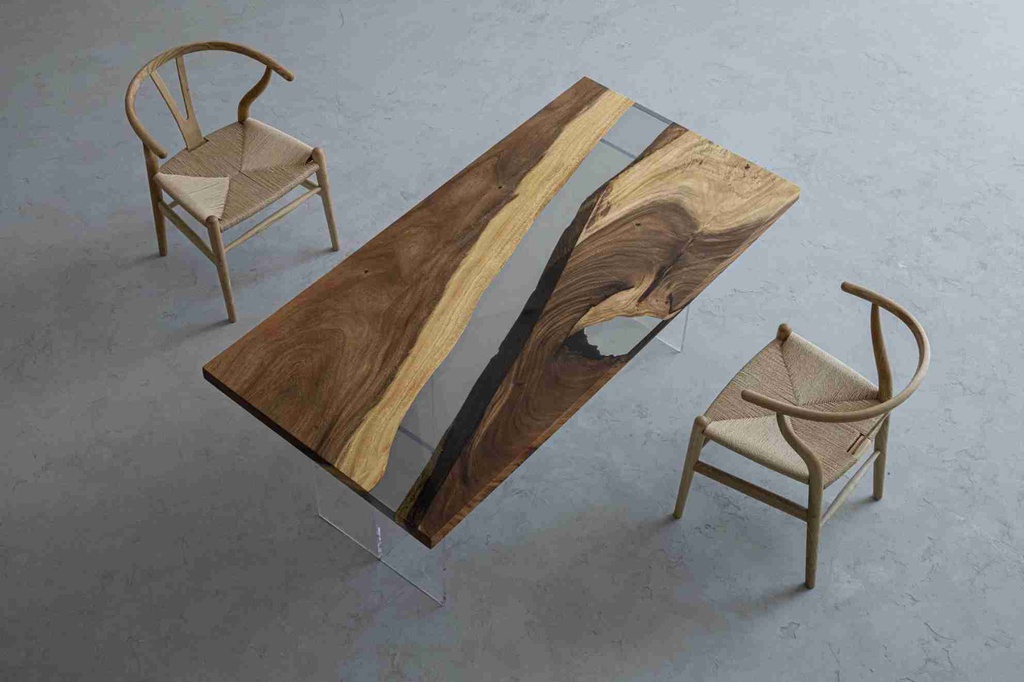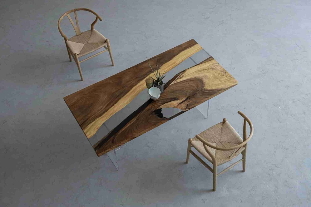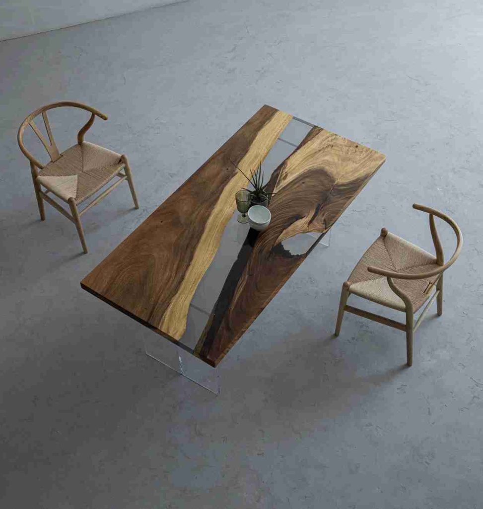 Bàn Gỗ Me Tây Đổ Epoxy Dài 200 Rộng 80 Cao 75 (cm)