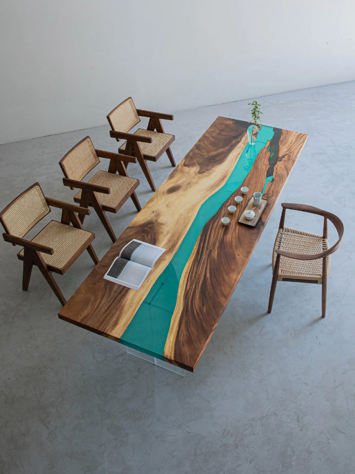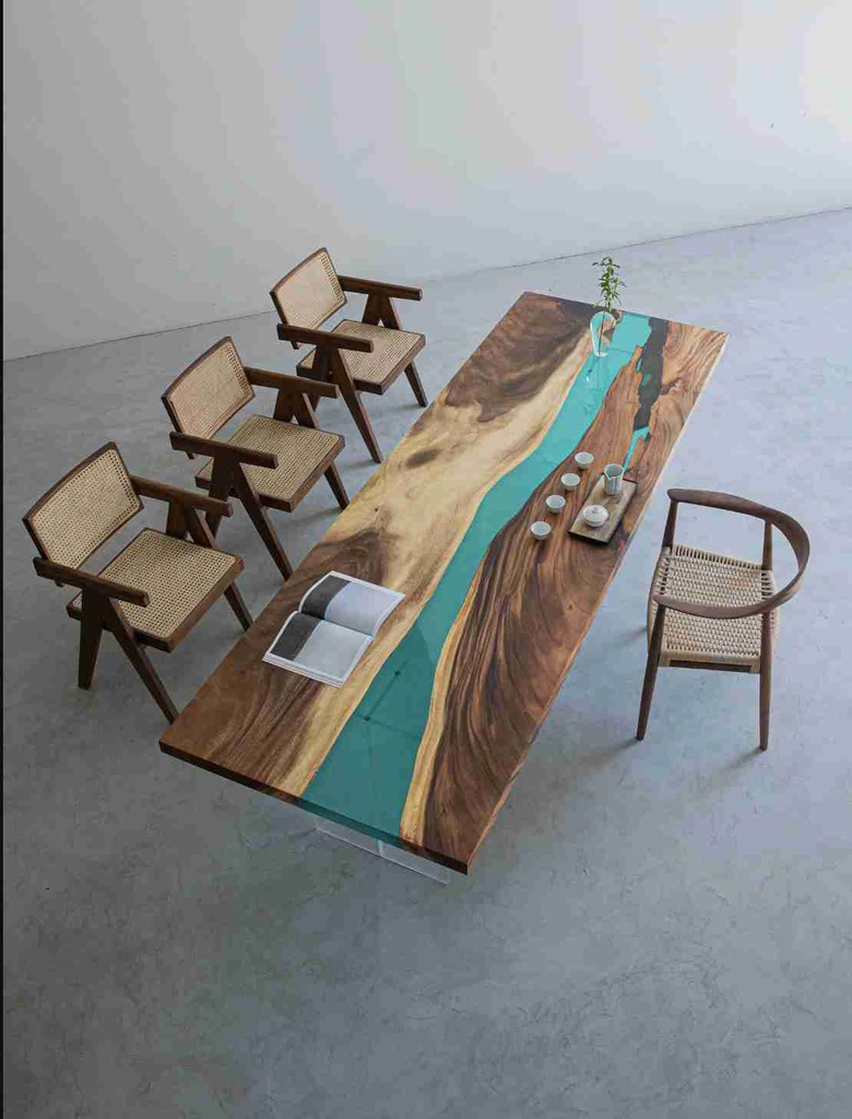 Bàn Làm Việc Đổ Epoxy Gỗ Me Tây Dài 220 Rộng 80 Cao 75 (cm)