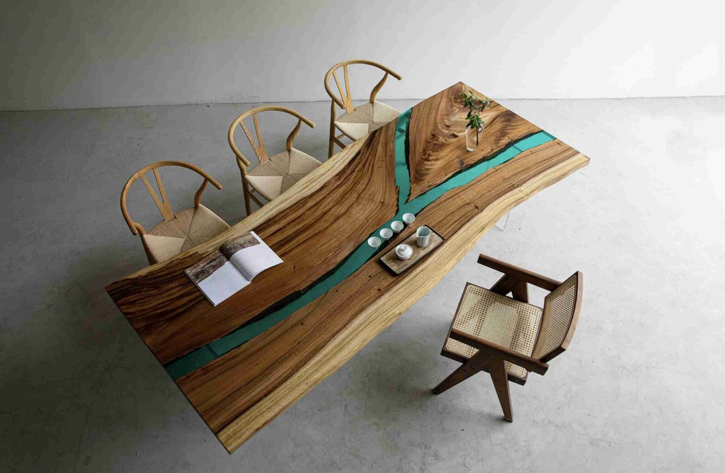 Bàn Làm Việc Đổ Epoxy Gỗ Me Tây Dài 220 Rộng 80 Cao 75 (cm)