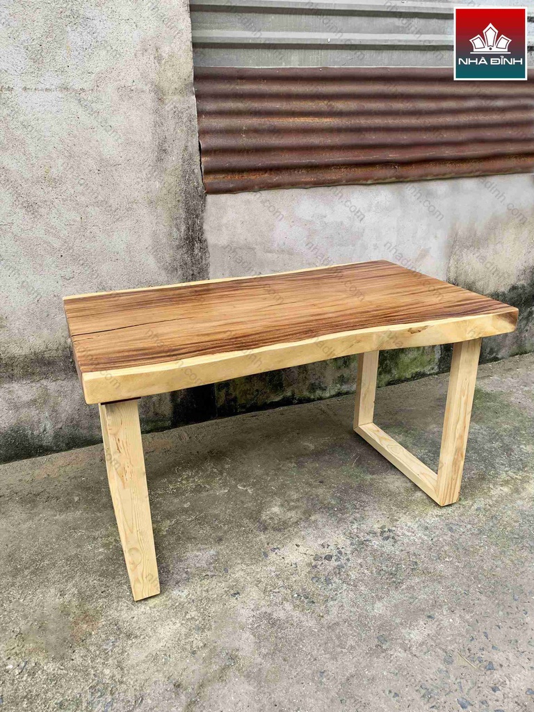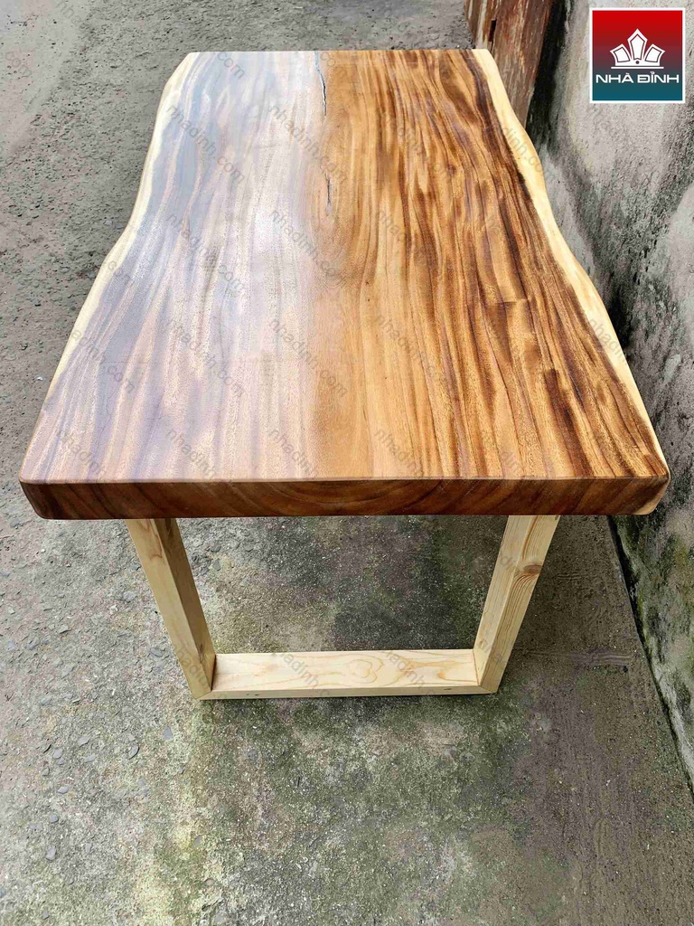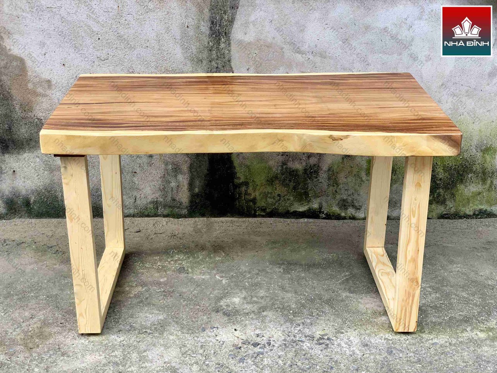 Bàn Làm Việc Gỗ Me Tây Nguyên Khối Dài 130 Rộng 72-80 Dày 7.5 Cao 77 (cm)