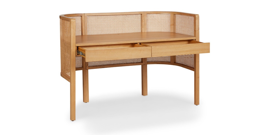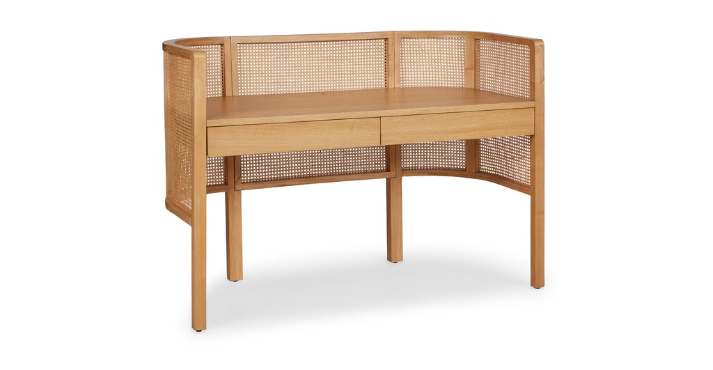 Bàn Làm Việc Gỗ Sồi Kết Hợp Mây Mắt Cáo