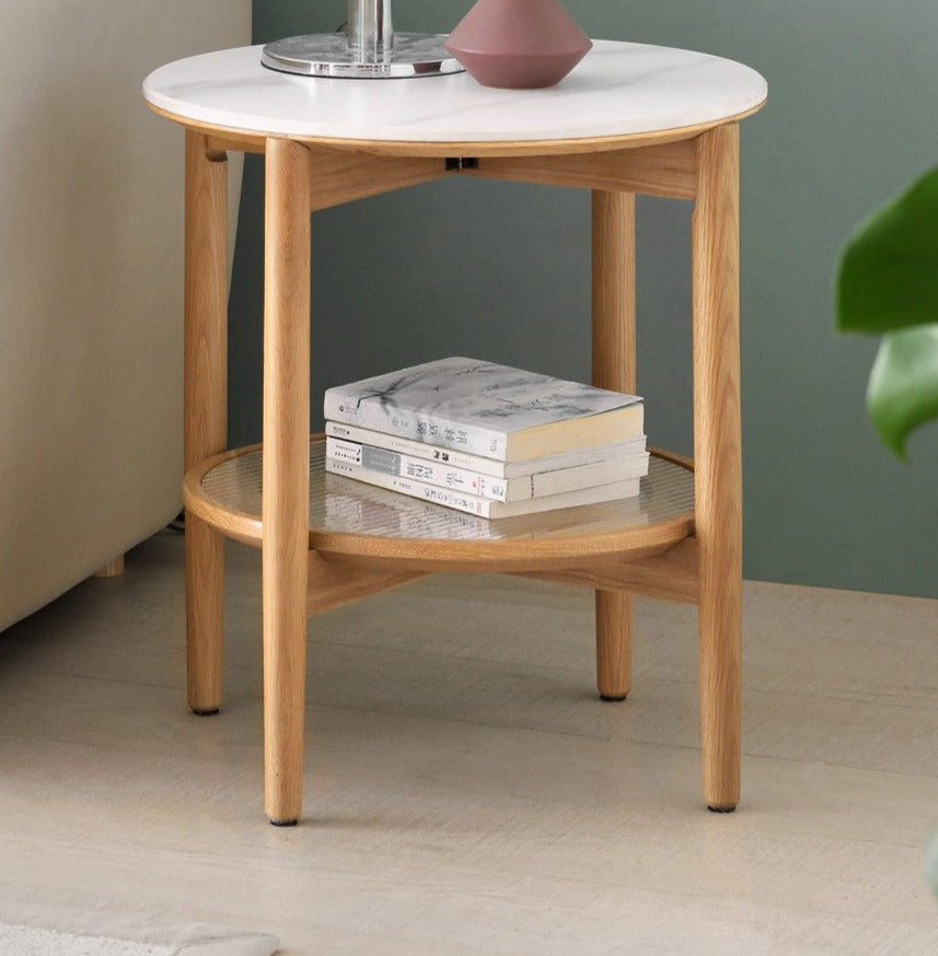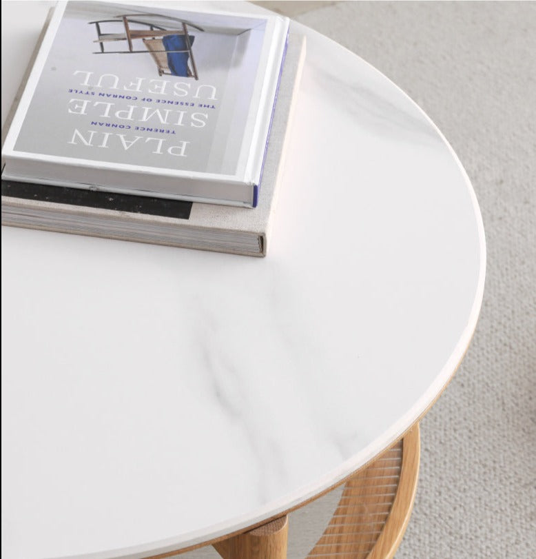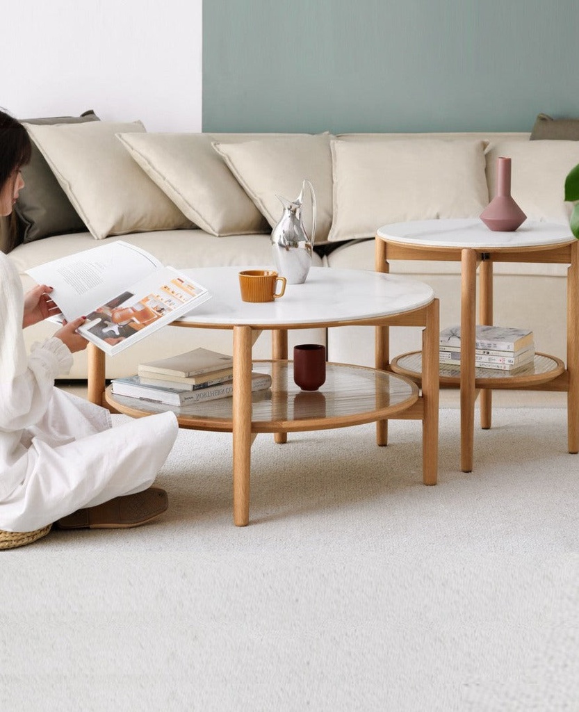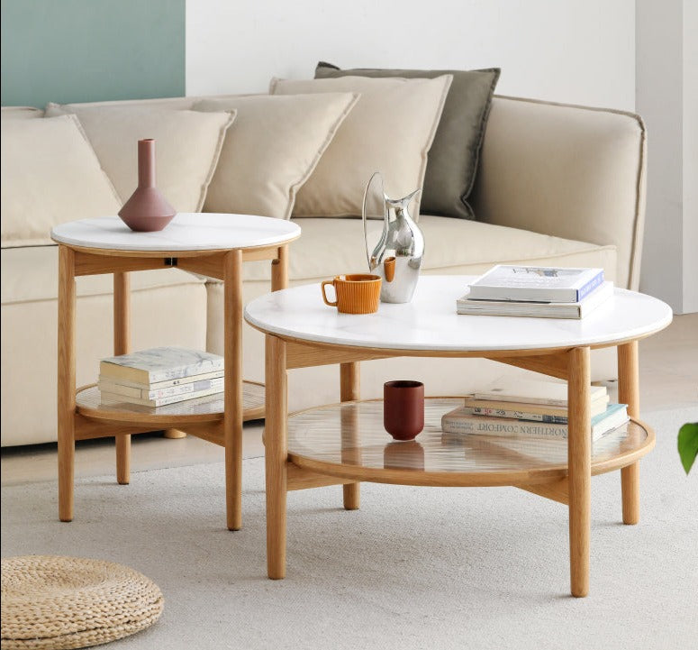 Bàn Trà Đôi Gỗ Sồi Kết Hợp Đá Và Kính Đường Kính 82-52 Cao 55 (cm)