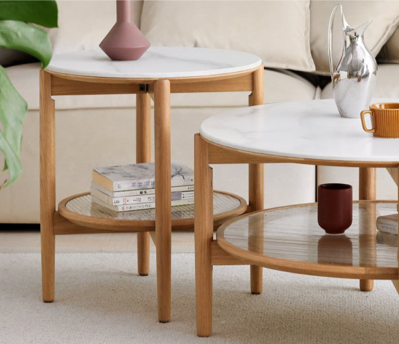 Bàn Trà Đôi Gỗ Sồi Kết Hợp Đá Và Kính