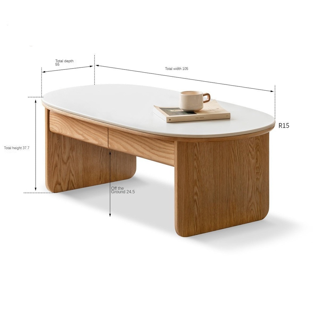 Bàn Trà Gỗ Sồi Kết Hợp Mặt Đá Dài 105 Rộng 55 Cao 37.7 (сm)