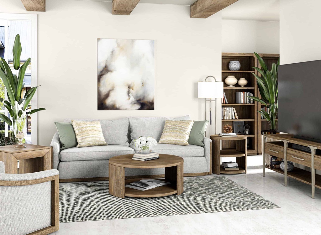 Bàn Trà Gỗ Sồi Sơn Xám Cao 46 Đường Kính 102 (cm)