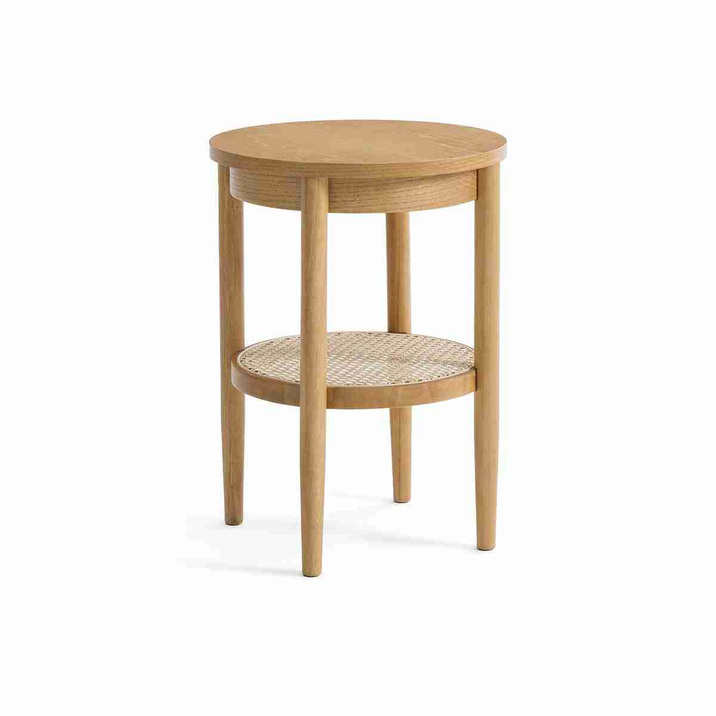 Bàn Tròn Đầu Giường Gỗ Sồi Kết Hợp Mây Cao 55 Đường Kính 40 (cm)