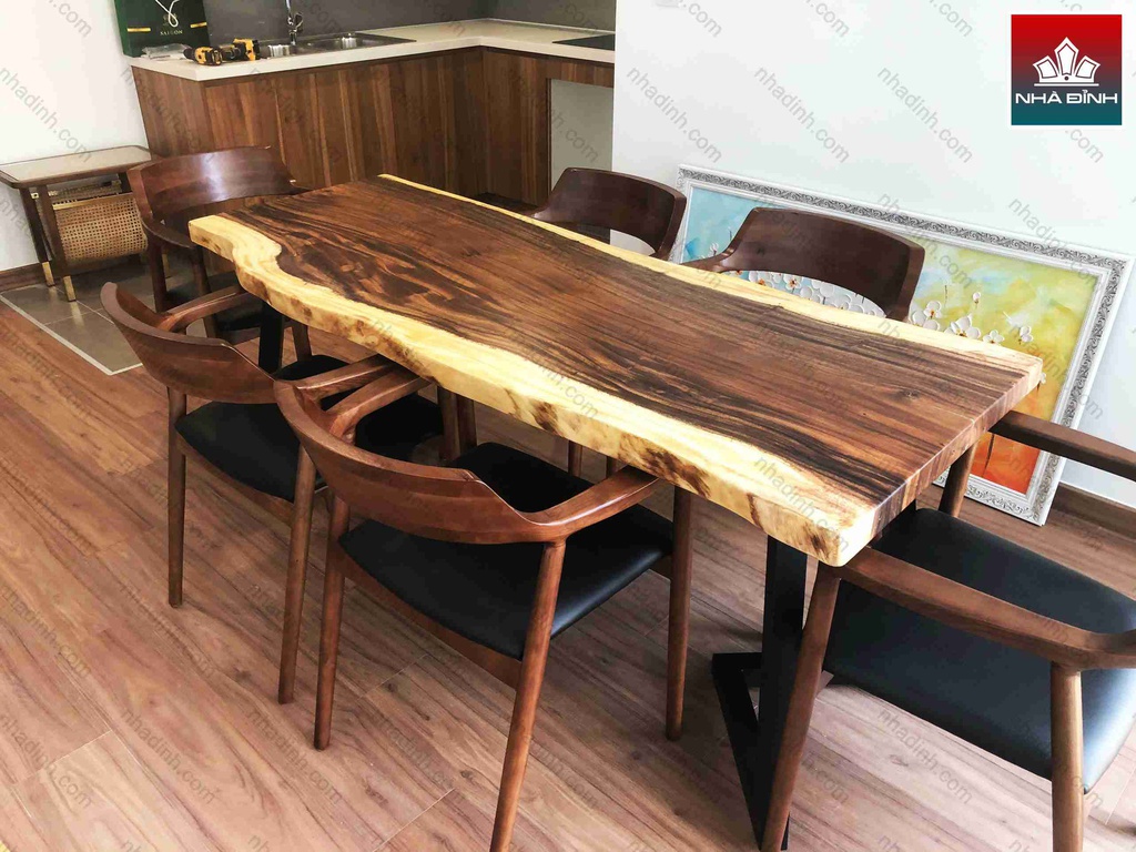 Bộ Bàn Ăn Gỗ Me Tây Nguyên Khối Dài 200 Rộng 61-68-68 (cm)