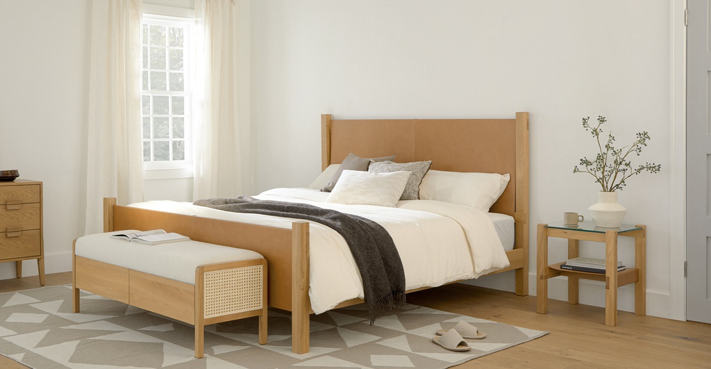 Ghế Đầu Giường Gỗ Sồi Kết Hợp Nệm Và Mây