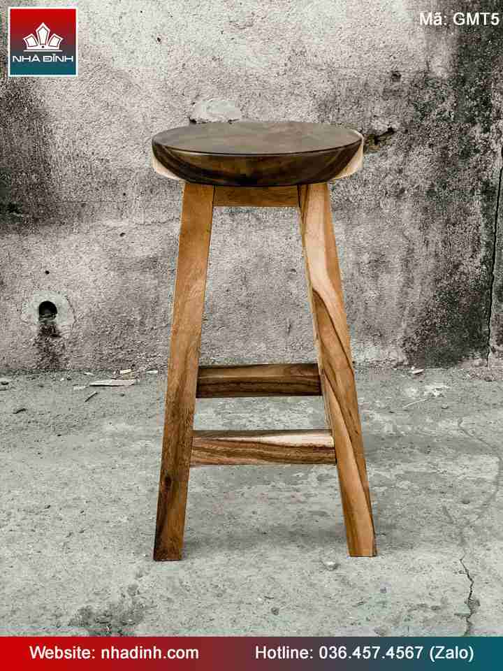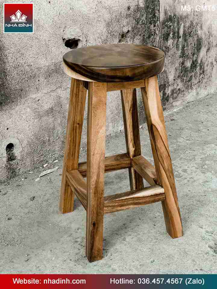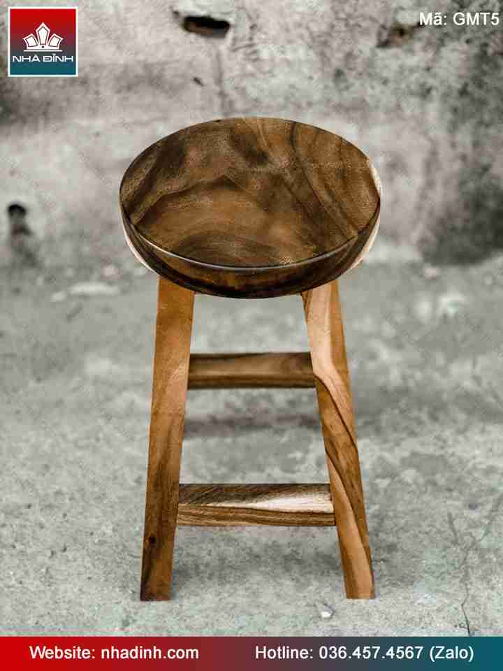 Ghế Gỗ Me Tây Mặt Tròn Cao 45 (cm)
