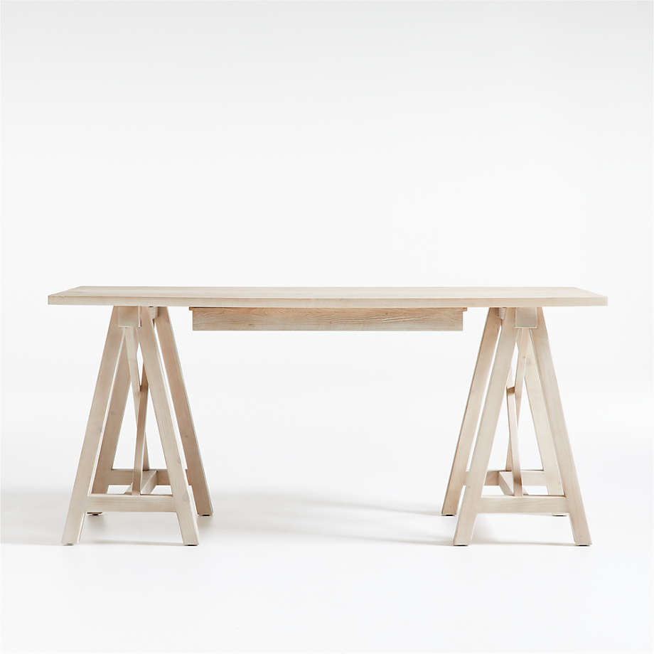 Bàn Làm Việc Gỗ Thông Sơn Trắng