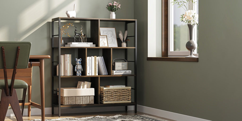 Kệ Sách Khung Sắt Gỗ MDF Cao 116 Rộng 100 Sâu 30 (cm)