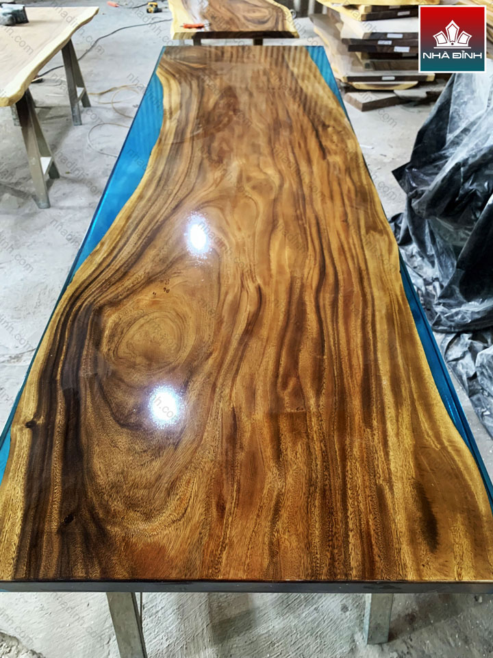 Mặt Bàn Ăn Gỗ Me Tây Kết Hợp Epoxy Dài 280 Rộng 80 Dày 5 (cm)