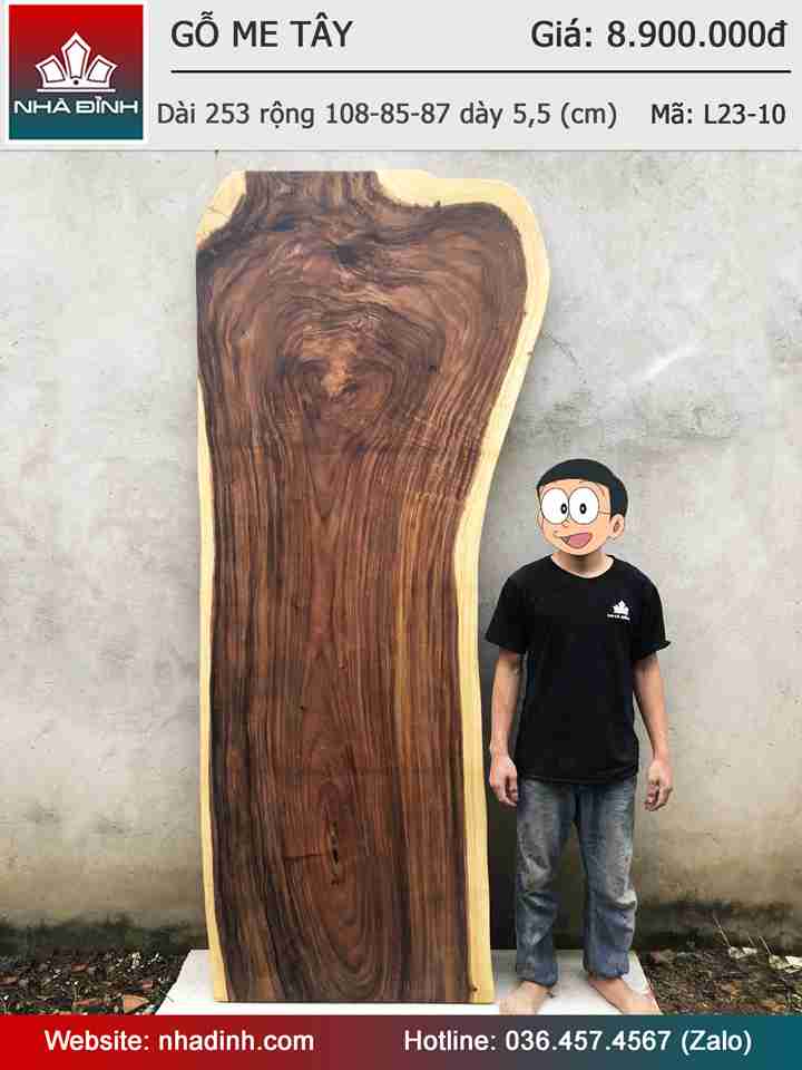 Mặt Bàn Ăn Gỗ Me Tây Nguyên Khối Dài 253 Rộng 108-85-87 Dày 5,5 (cm)