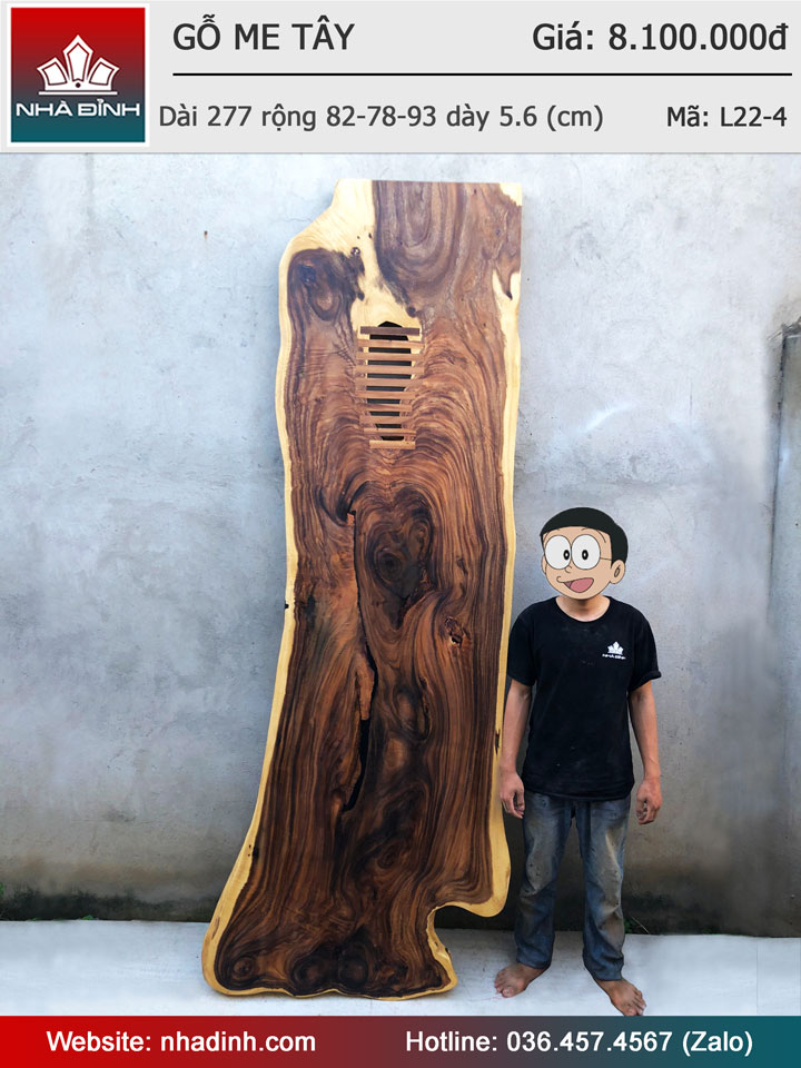 Mặt Bàn Ăn Gỗ Me Tây Nguyên Khối Dài 277 Rộng 82-78-93 Dày 5,6 (cm)