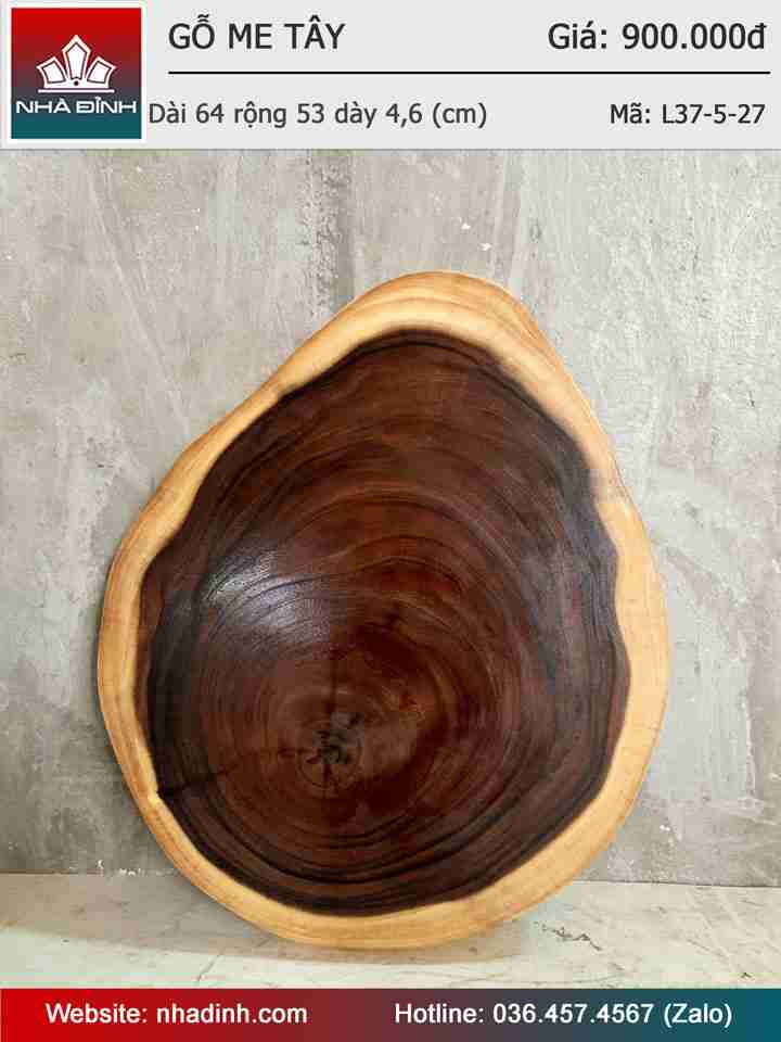 Mặt Bàn Cafe Gỗ Me Tây Nguyên Khối Dài 64 Rộng 53 Dày 4,6 (cm)
