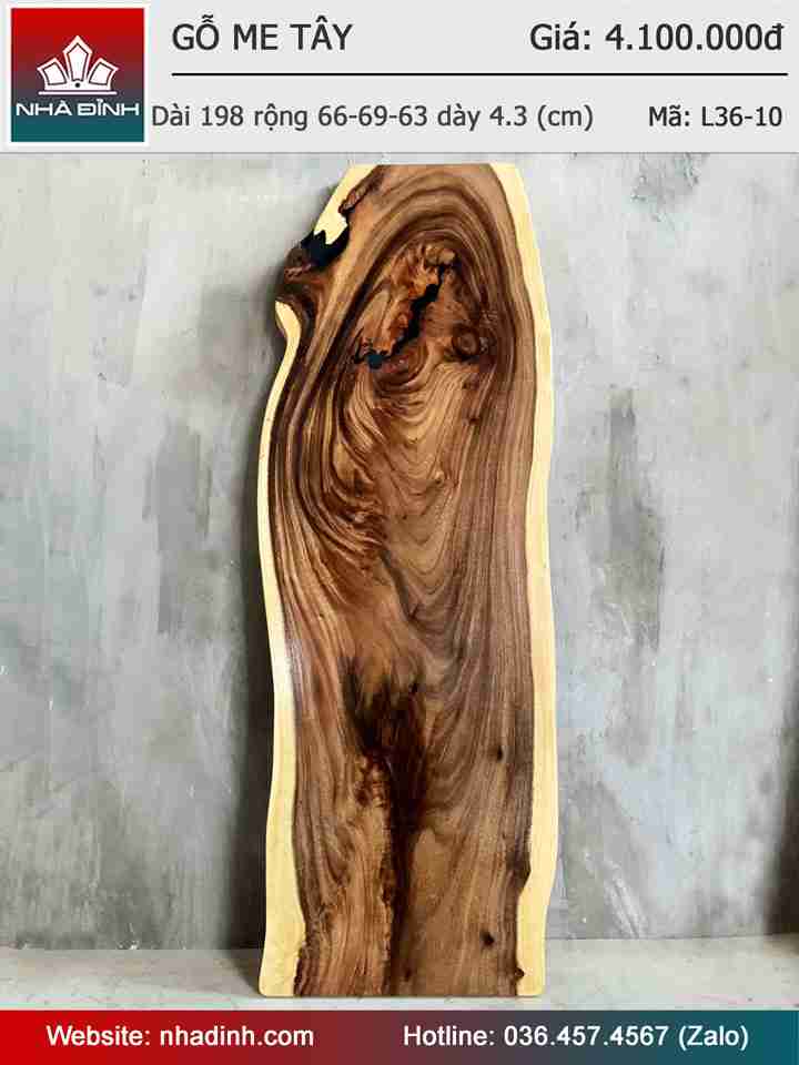 Mặt Bàn Dài Gỗ Me Tây Nguyên Khối Dài 198 Rộng 66-69-63 Dày 4,3 (cm)