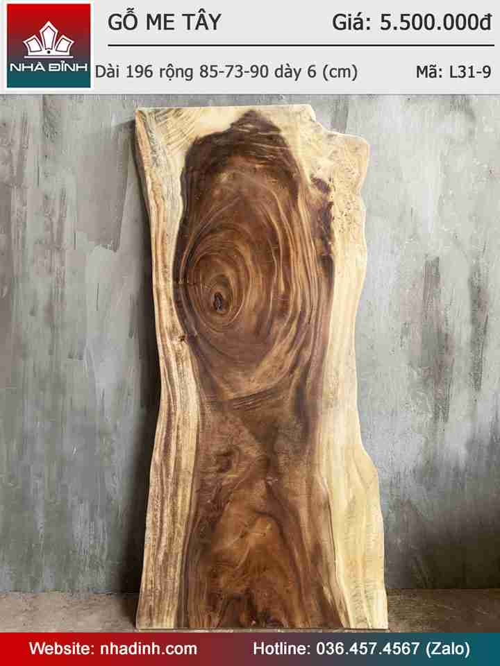 Mặt Bàn Gỗ Me Tây Nguyên Khối Dài 196 Rộng 85-73-90 Dày 6 (cm)