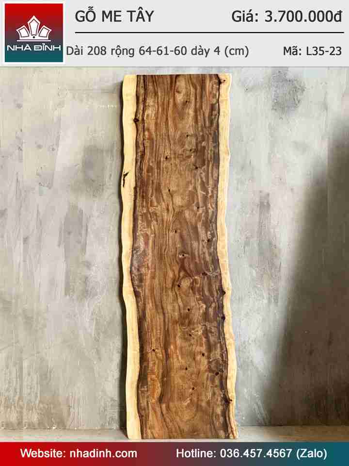 Mặt Bàn Gỗ Me Tây Nguyên Khối Dài 208 Rộng 64-61-60 Dày 4 (cm)