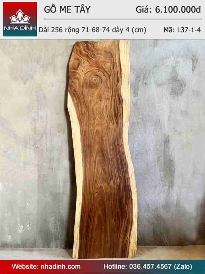 Mặt Bàn Gỗ Me Tây Nguyên Khối Dài 256 Rộng 71-68-74 Dày 4 (cm)