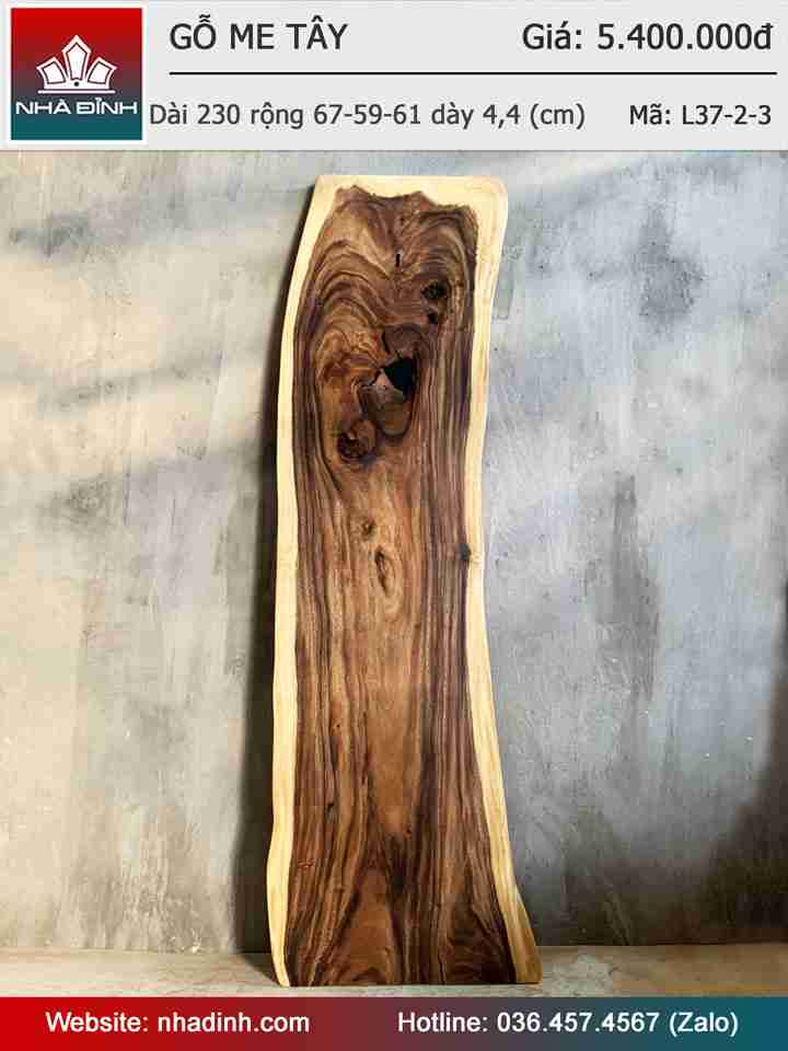 Mặt Bàn Gỗ Me Tây Nguyên Khối Dài 230 Rộng 67-59-61 Dày 4.4 (cm)