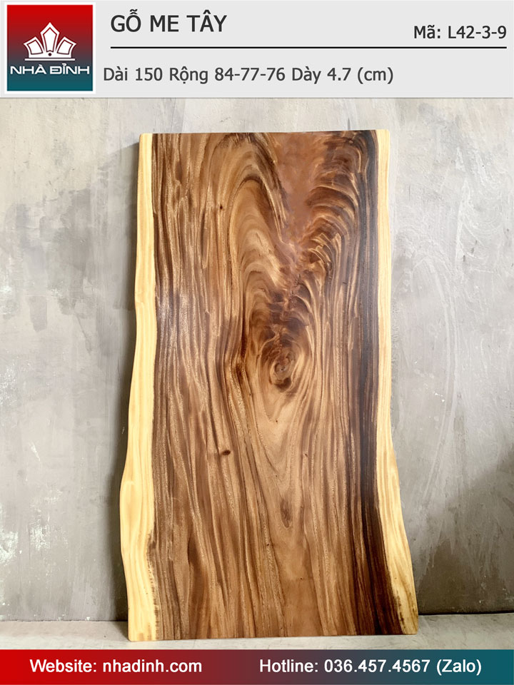 Mặt Bàn Gỗ Me Tây Nguyên Khối Dài 150 Rộng 84-77-76 Dày 4.7 (cm)