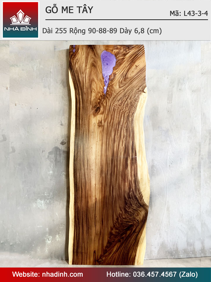 Mặt Bàn Gỗ Me Tây Nguyên Khối Dài 255 Rộng 90-88-89 Dày 6.8 (cm)