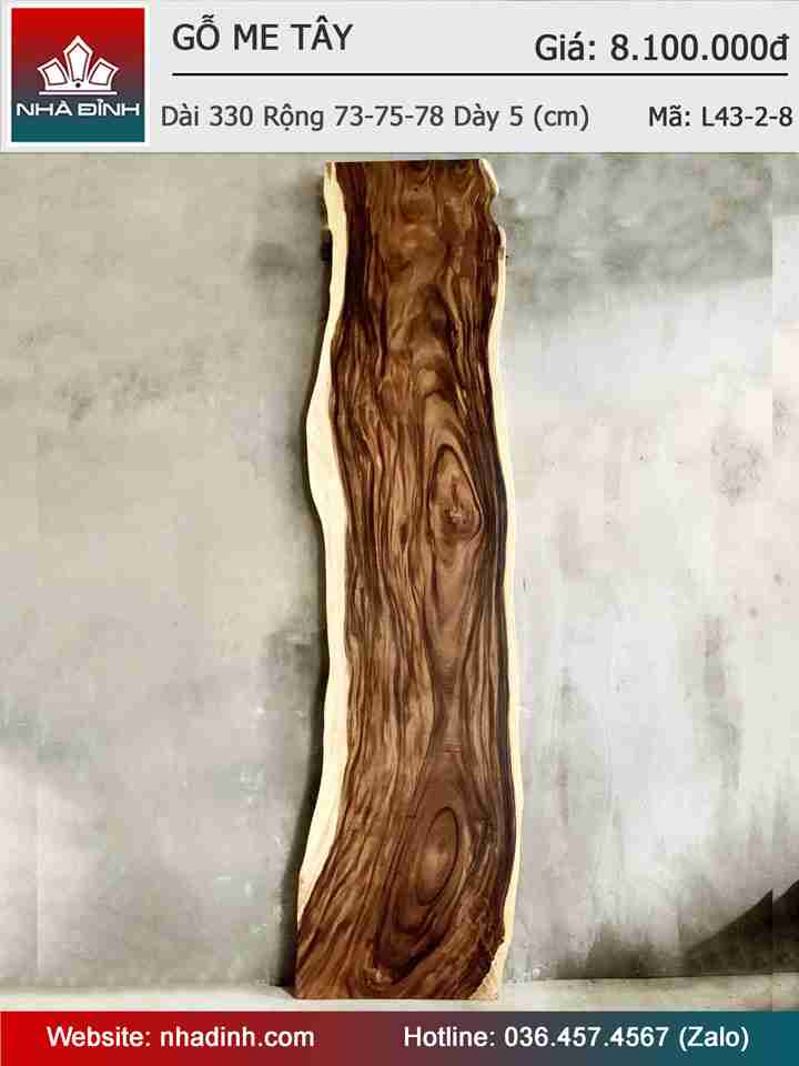 Mặt Bàn Gỗ Me Tây Nguyên Khối Dài 330 Rộng 73-75-78 Dày 5 (cm)