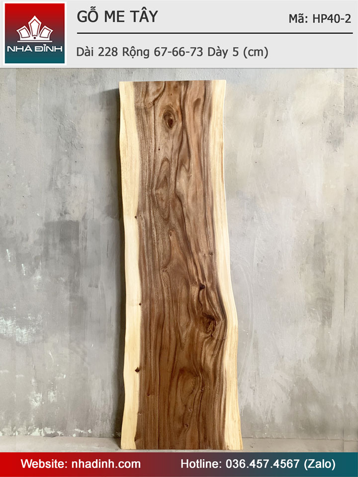 Mặt Bàn Gỗ Me Tây Nguyên Khối Dài 228 Rộng 67-66-73 Dày 5 (cm)