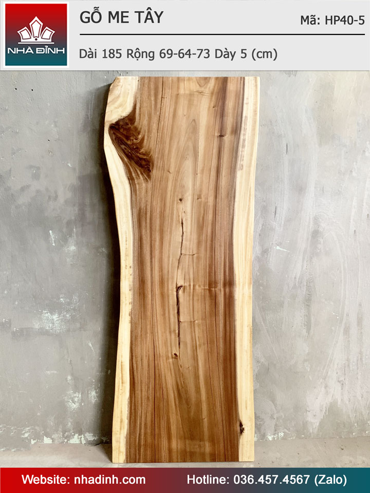 Mặt Bàn Gỗ Me Tây Nguyên Khối Dài 185 Rộng 69-64-73 Dày 5 (cm)