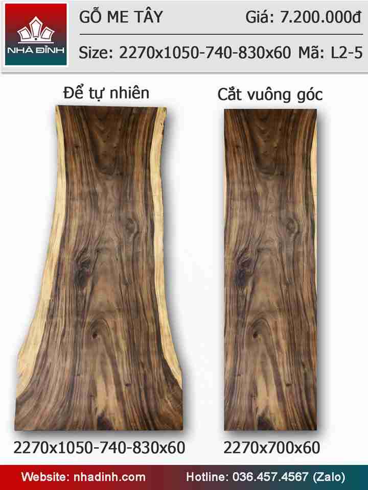 Mặt bàn gỗ Me Tây nguyên khối dài 2m27 rộng 1m05-74-83 dày 6 (cm)