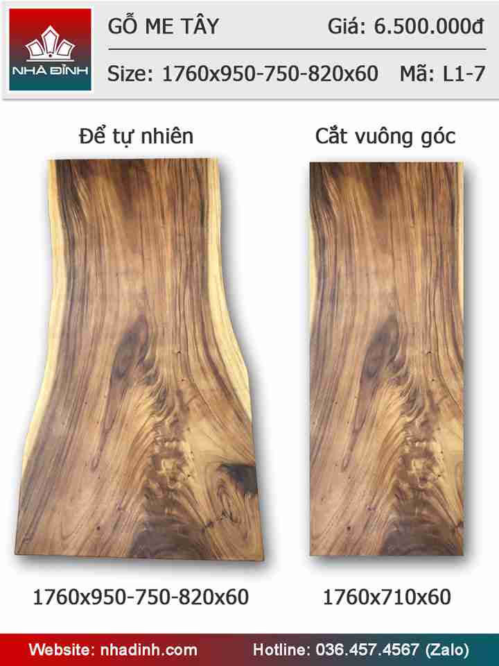 Mặt bàn gỗ Me Tây nguyên khối dài 1m76 rộng 95 - 75 - 82 dày 6 (cm)