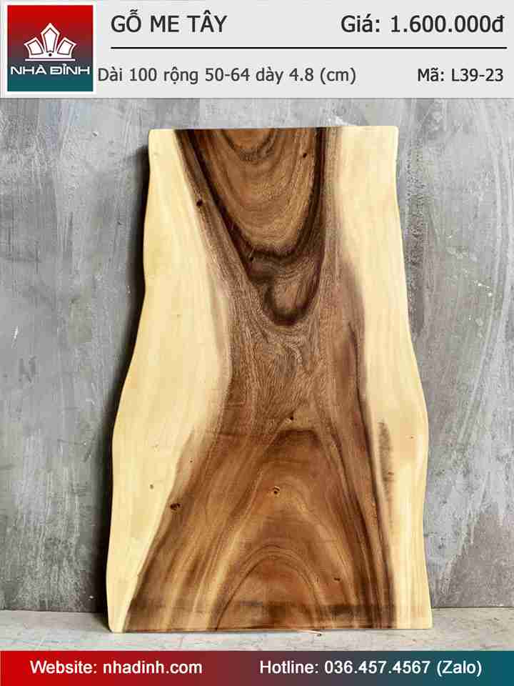 Mặt Bàn Gỗ Me Tây Nguyên Khối Dài 100 Rộng 50-64 Dày 4,8 (cm)