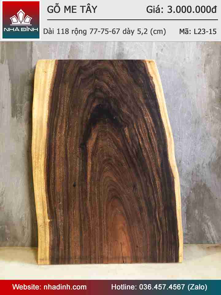 Mặt Bàn Gỗ Me Tây Nguyên Khối Dài 118 Rộng 77-75-67 Dày 5,2 (cm)