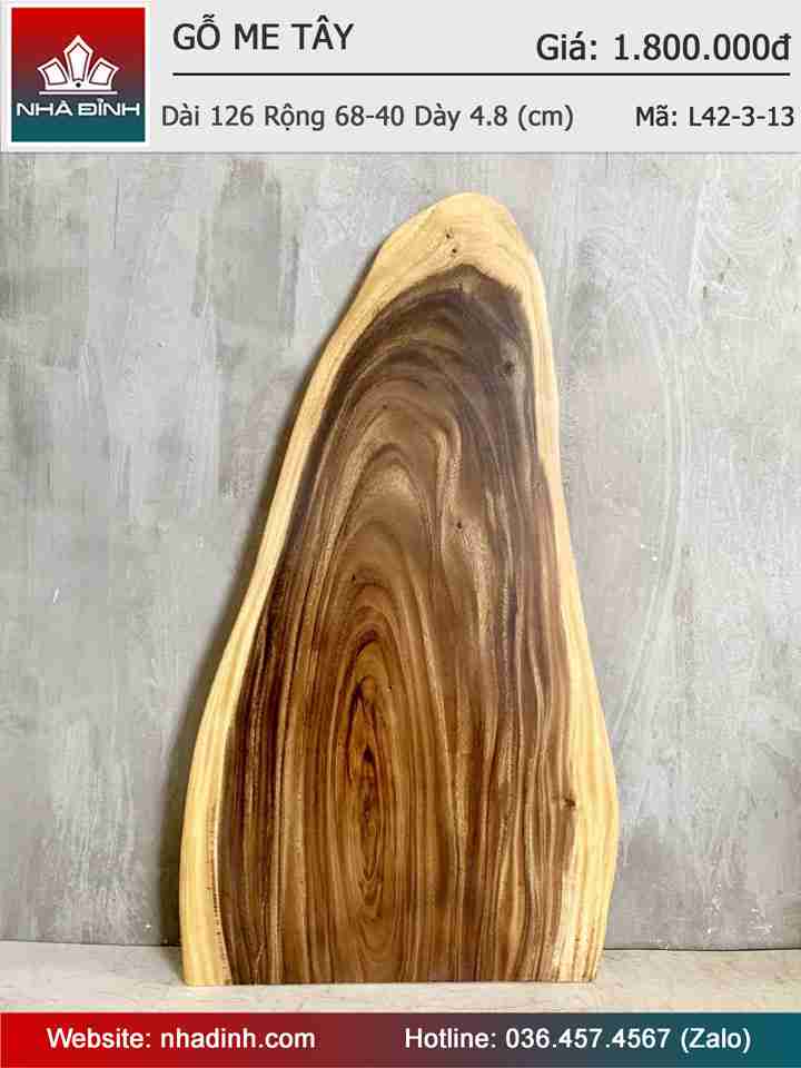 Mặt Bàn Gỗ Me Tây Nguyên Khối Dài 126 Rộng 68-40 Dày 4,8 (cm)