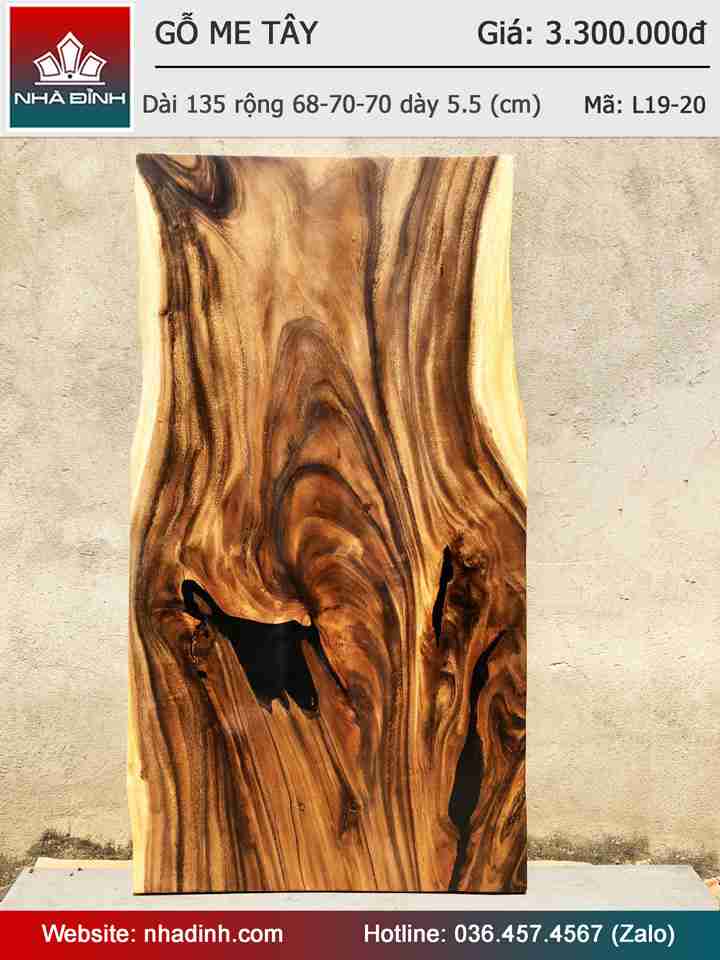 Mặt Bàn Gỗ Me Tây Nguyên Khối Dài 133 Rộng 70-72-70 Dày 4,3 (cm)
