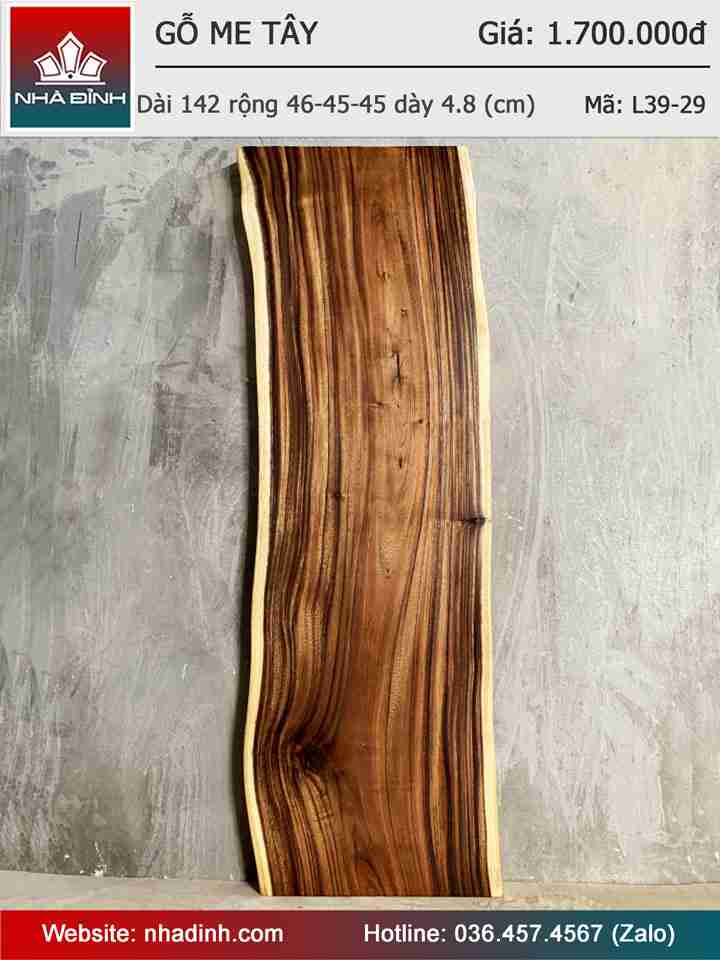 Mặt Bàn Gỗ Me Tây Nguyên Khối Dài 142 Rộng 46-45-45 Dày 4,8 (cm)