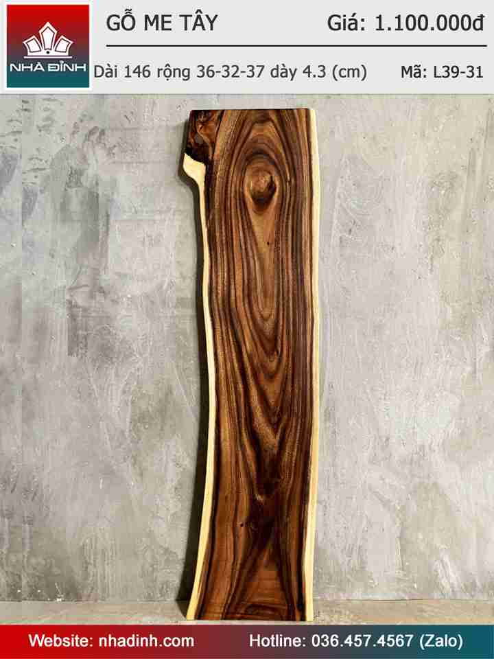 Mặt Bàn Gỗ Me Tây Nguyên Khối Dài 146 Rộng 36-32-37 Dày 4,3 (cm)