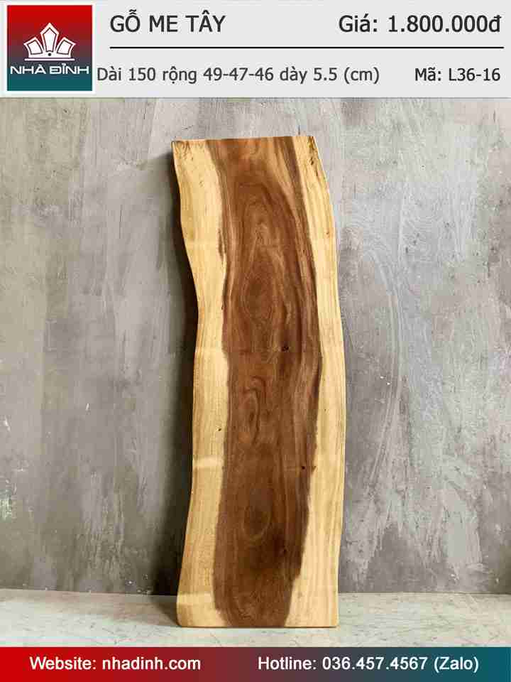 Mặt Bàn Gỗ Me Tây Nguyên Khối Dài 150 Rộng 49-47-46 Dày 5,5 (cm)