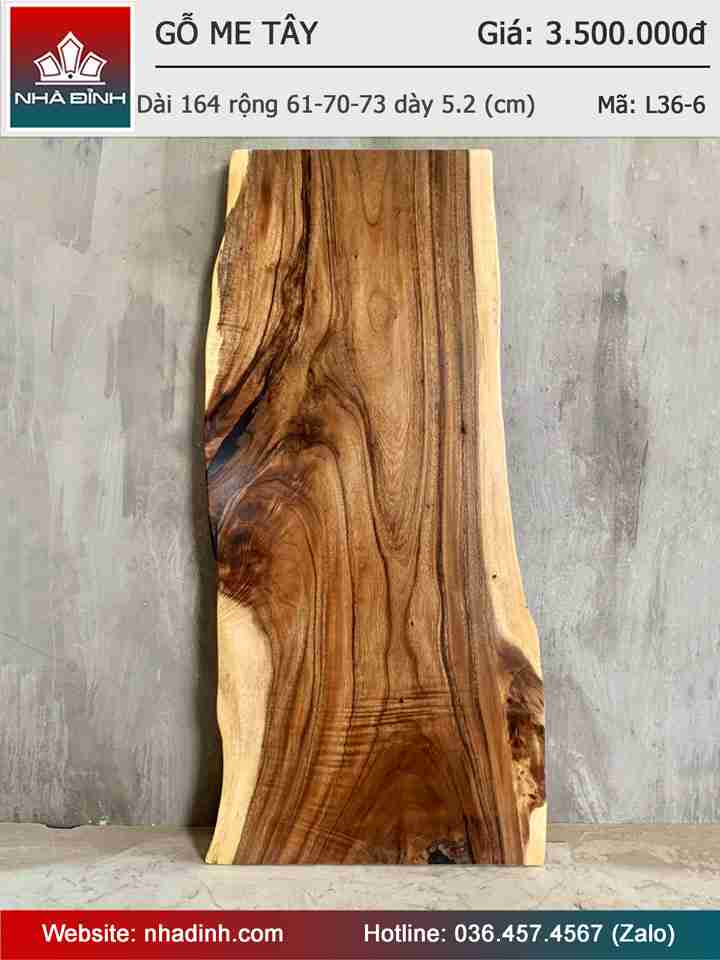 Mặt Bàn Gỗ Me Tây Nguyên Khối Dài 164 Rộng 61-70-73 Dày 5,2 (cm)