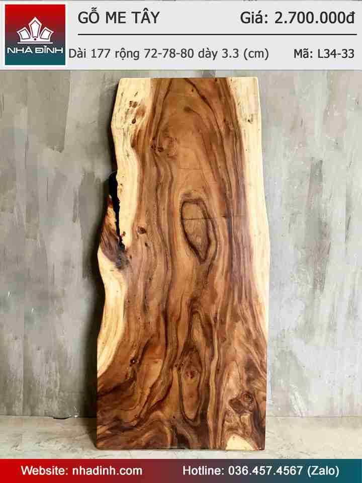 Mặt Bàn Gỗ Me Tây Nguyên Khối Dài 177 Rộng 72-78-80 Dày 3,3 (cm)