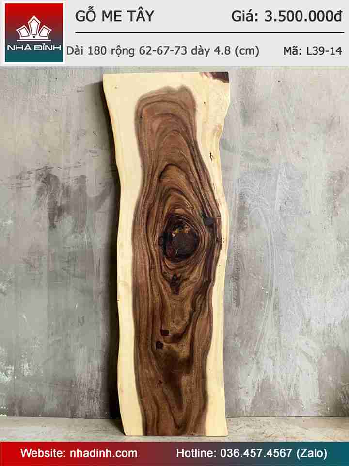 Mặt Bàn Gỗ Me Tây Nguyên Khối Dài 180 Rộng 62-67-73 Dày 4,8 (cm)